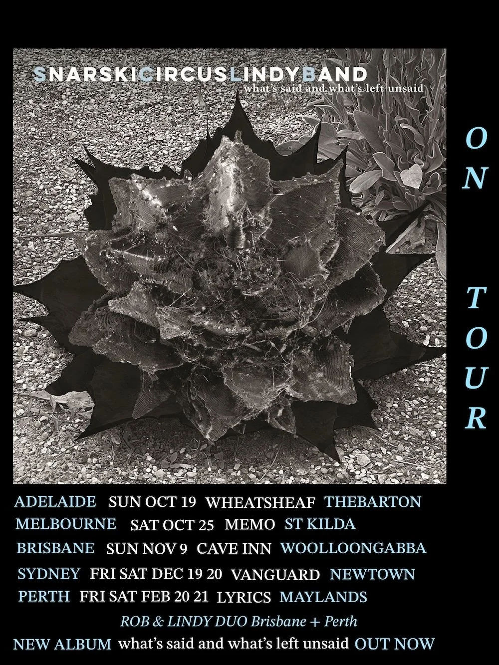 SCLB showcases the powerful songwriting collaboration between Rob Snarski and Lindy Morrison and boasts a formidable lineup of musical talent. Rob Snarski's evocative vocals weave through a rich tapestry of genres, from country-tinged ballads to post-punk-pop, bringing some deeply personal stories to life with gentle humour and beauty.