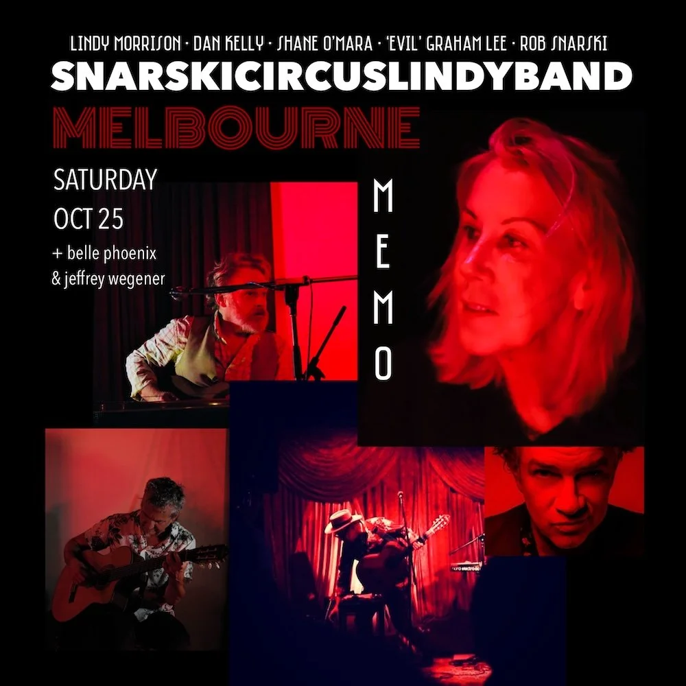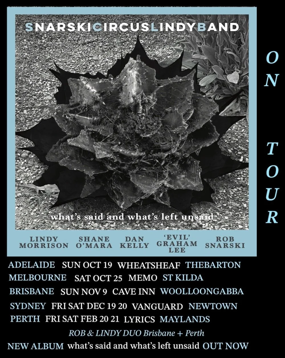 The debut album from SnarskiCircusLindyBand is officially out in stores and on streaming platforms. Featuring members of The Go-Betweens, The Triffids, The Blackeyed Susans, Rebecca’s Empire, Alpha Males as well as guest appearances from Amanda Brown, Romy Vager, Lili Alaska, Jack Howard and more.